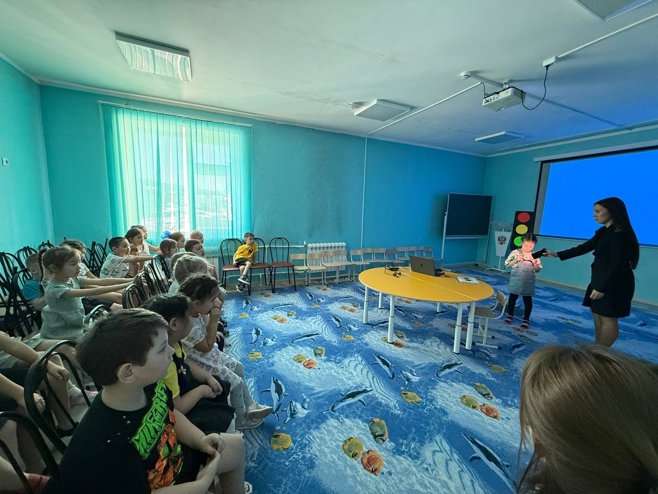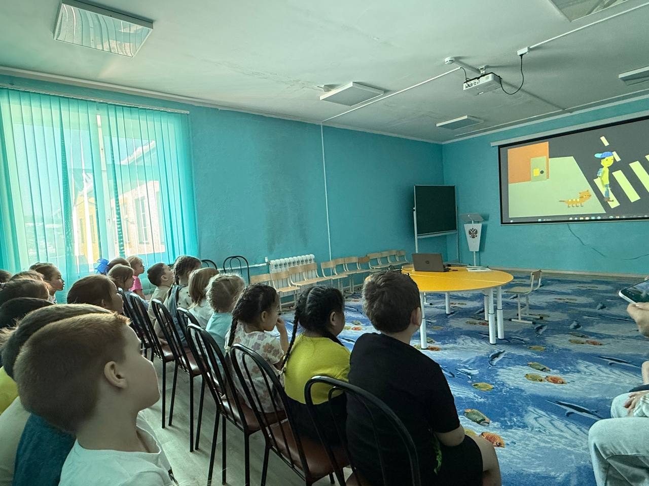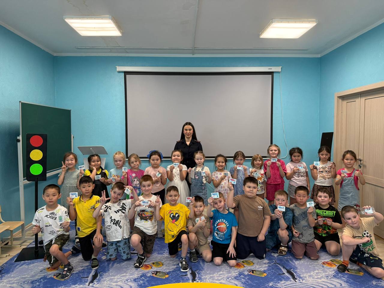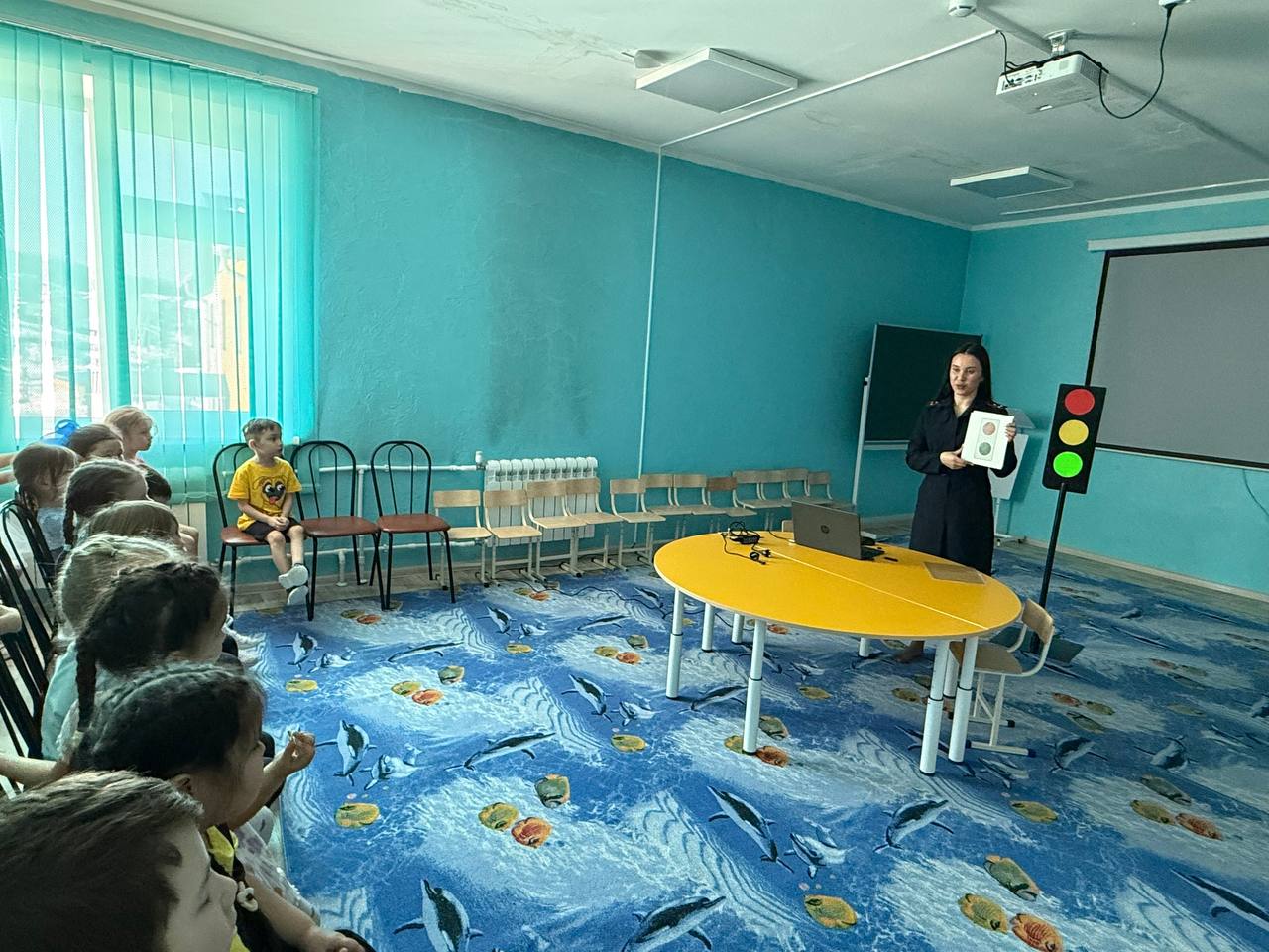 Дошколята с большим вниманием слушали инспектора ГАИ и активно участвовали в беседе. Кульминацией встречи стал просмотр тематического мультфильма, который на ярких примерах показал, к чему может привести невнимательность на дороге.