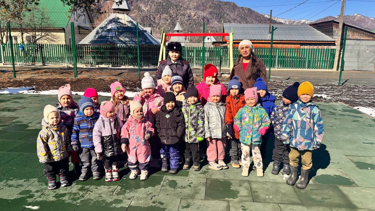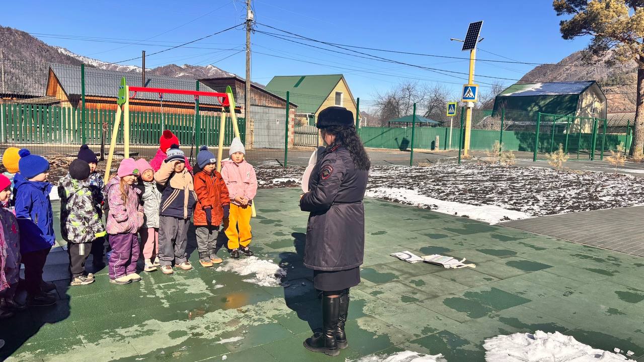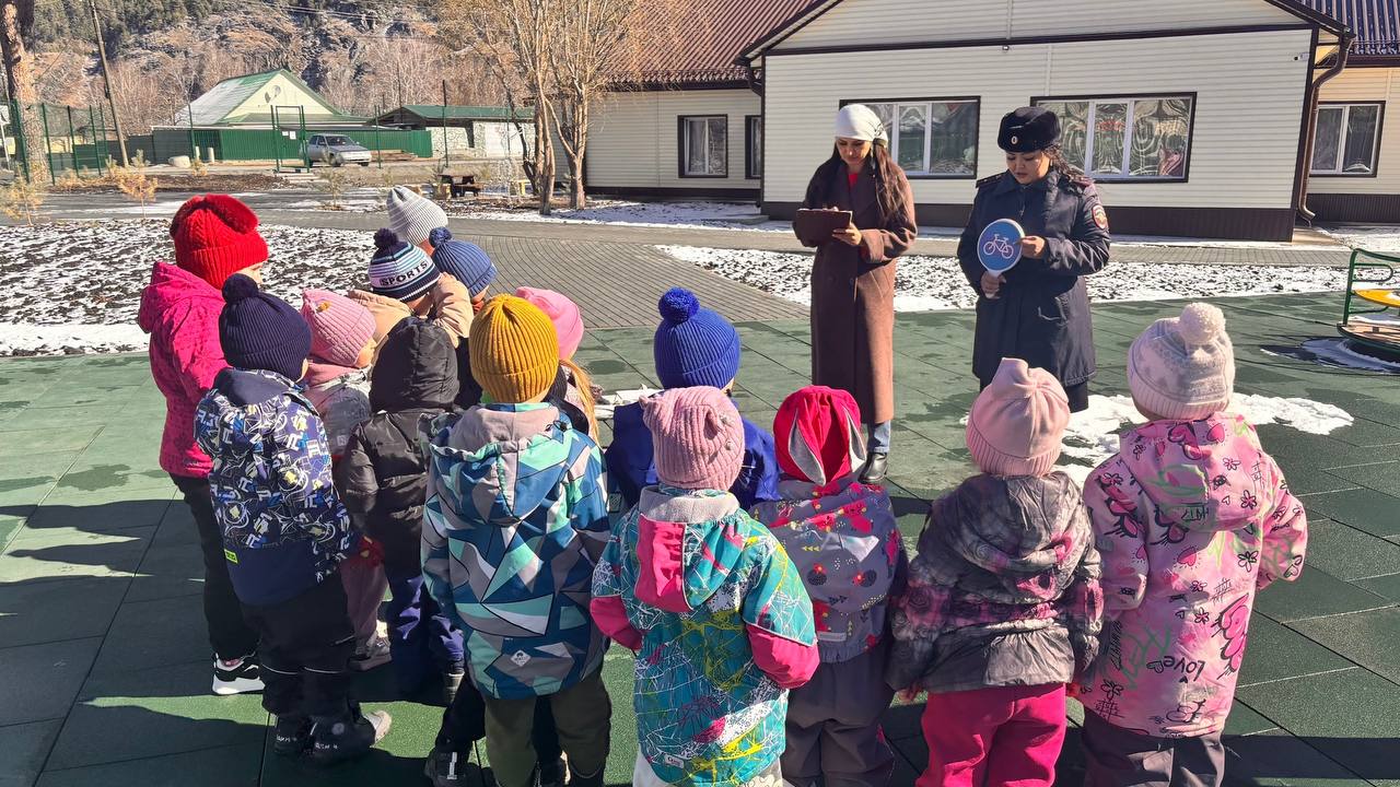 Сотрудники Госавтоинспекции совместно с сотрудником «РЦДО» провели необычное занятие для воспитанников Чемальского детского сада. На этот раз урок безопасности прошел прямо на улице!