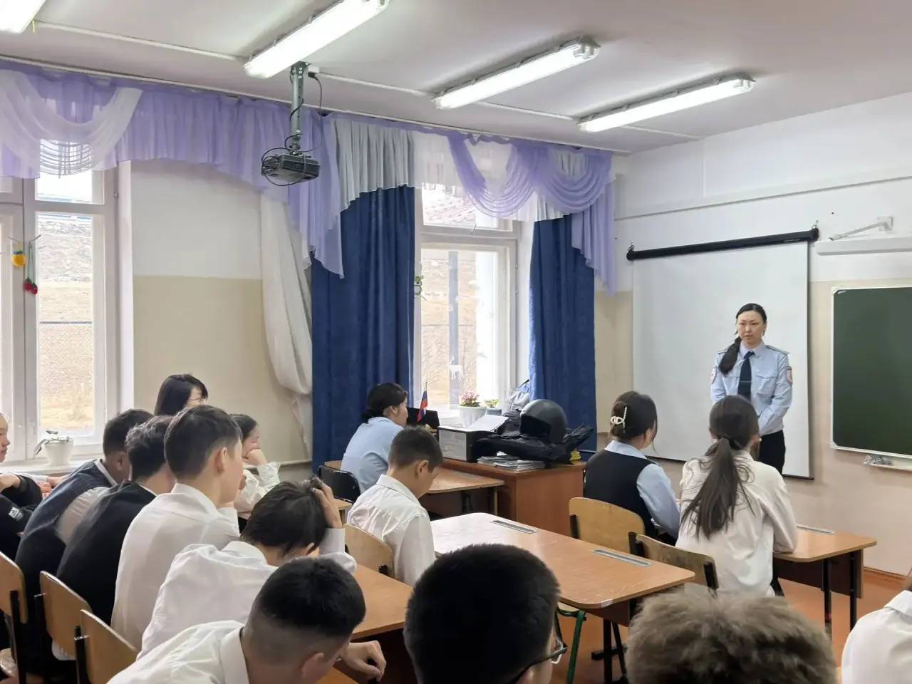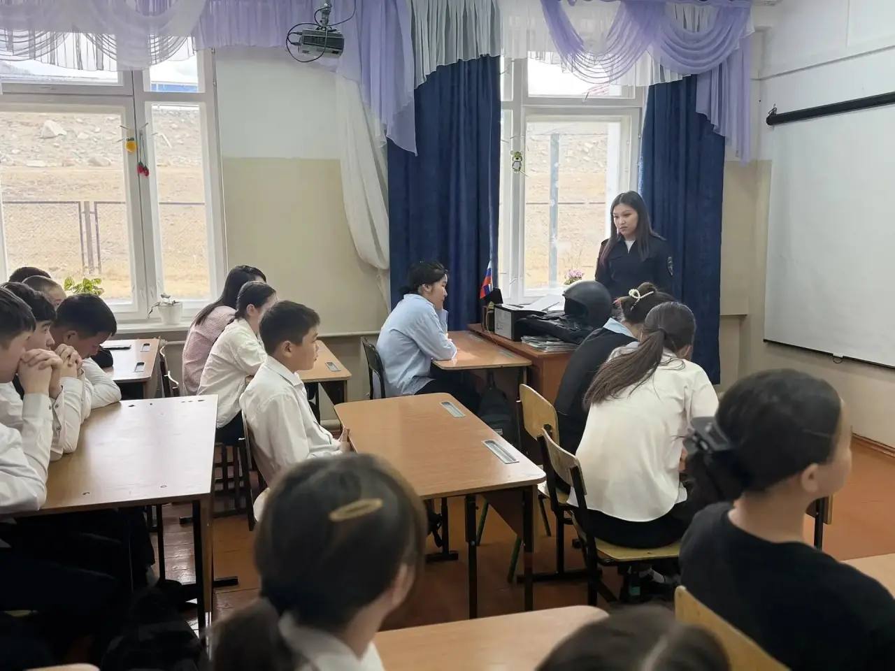 Сотрудник Госавтоинспекции Онгудайского района и инспектор ПДН встретились со школьниками, чтобы напомнить о важности соблюдения правил дорожного движения.