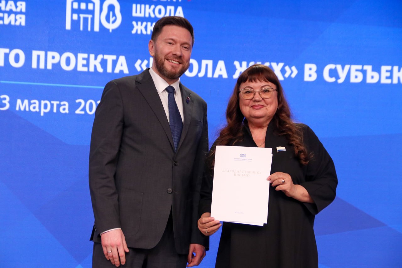 По итогам форума от имени заместителя председателя Комитета Госдумы по строительству и ЖКХ Светланы Разворотневой федеральный координатор проекта Александр Козлов вручил алтайскому депутату Благодарность.