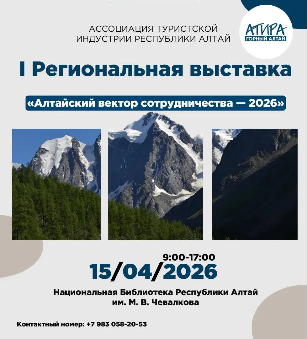 Ассоциация туристской индустрии Республики Алтай (АТИРА) приглашает вас принять участие в знатовом событии отрасли — Первой региональной туристской выставке «Алтайский вектор сотрудничества – 2026».