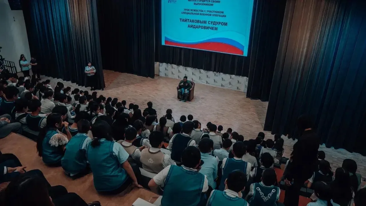 Внашей школе состоялся особенный и значимый «Урок мужества». Гостем встречи стал наш выпускник - участник специальной военной операции Тайтаков Судур Айдарович.