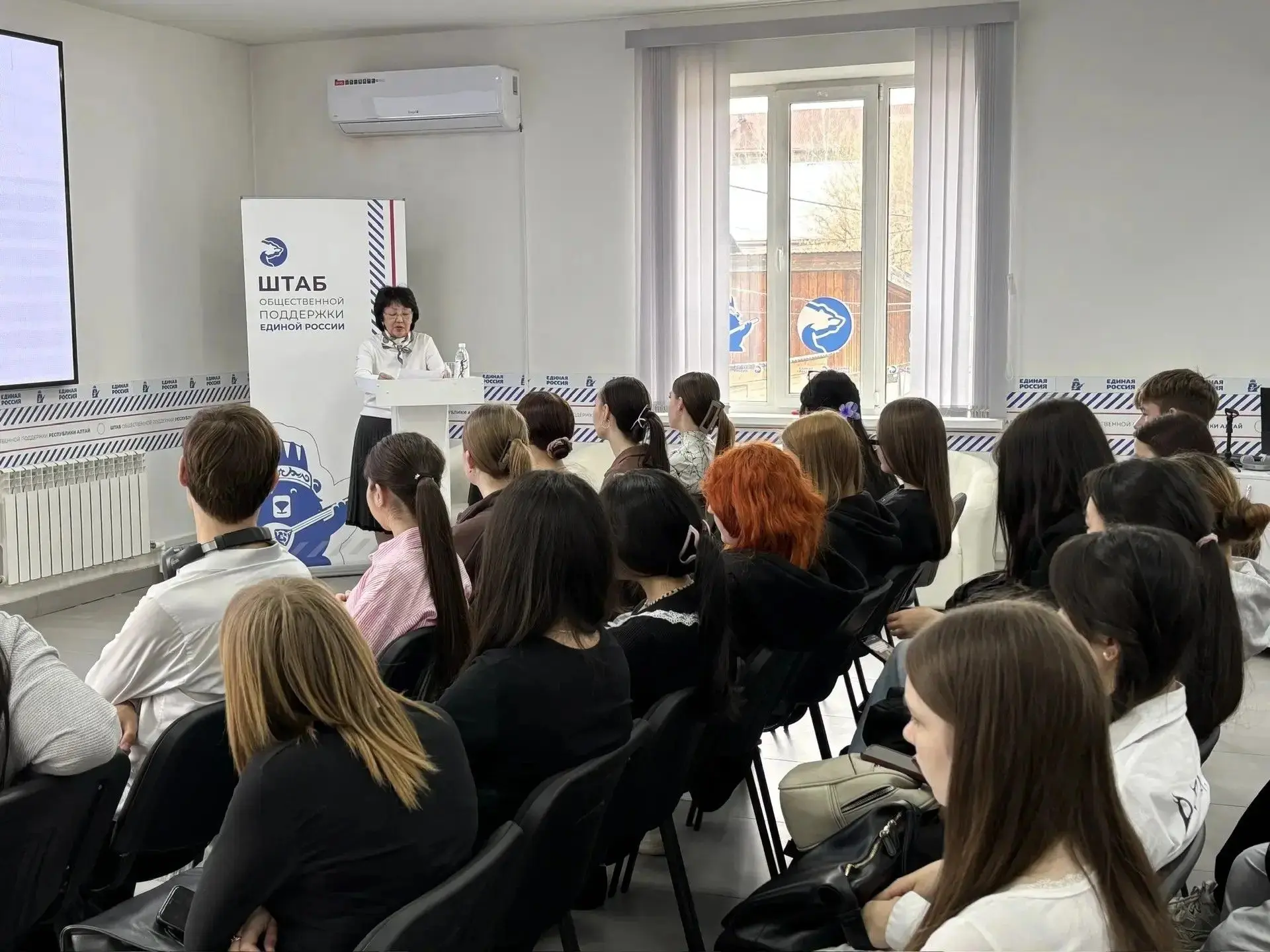 В Штабе общественной поддержки «Единой России» в рамках партпроекта «Историческая память» прошла лекция, приуроченная ко Дню российского парламентаризма. Перед студентами выступила депутат Республики Алтай, координатор партпроекта «Культура малой Родины» Наталья Екеева.