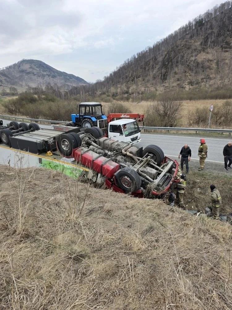 Утром 27 апреля вблизи села Черга произошло серьёзное ДТП. 51-летний водитель из Монголии, находившийся за рулём грузового автомобиля DAF XF 105, не справился с управлением. Фура съехала с дороги и опрокинулась в кювет.