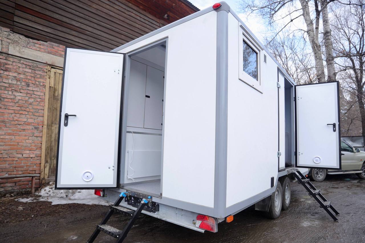 В Республику поступил санпропускник для ветеринарной лаборатории. Это передвижной пункт для санитарной обработки персонала в районах ликвидации последствий болезни сельхозживотных, в том числе во время дезинфекции и обеззараживания хозяйств и предприятий.