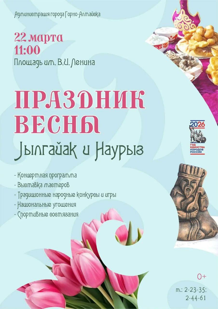 Народные праздники Jылгайак и Наурыз пройдут в Горно-Алтайске в воскресенье, 22 марта. Начало мероприятий – в 11:00 на центральной площади.