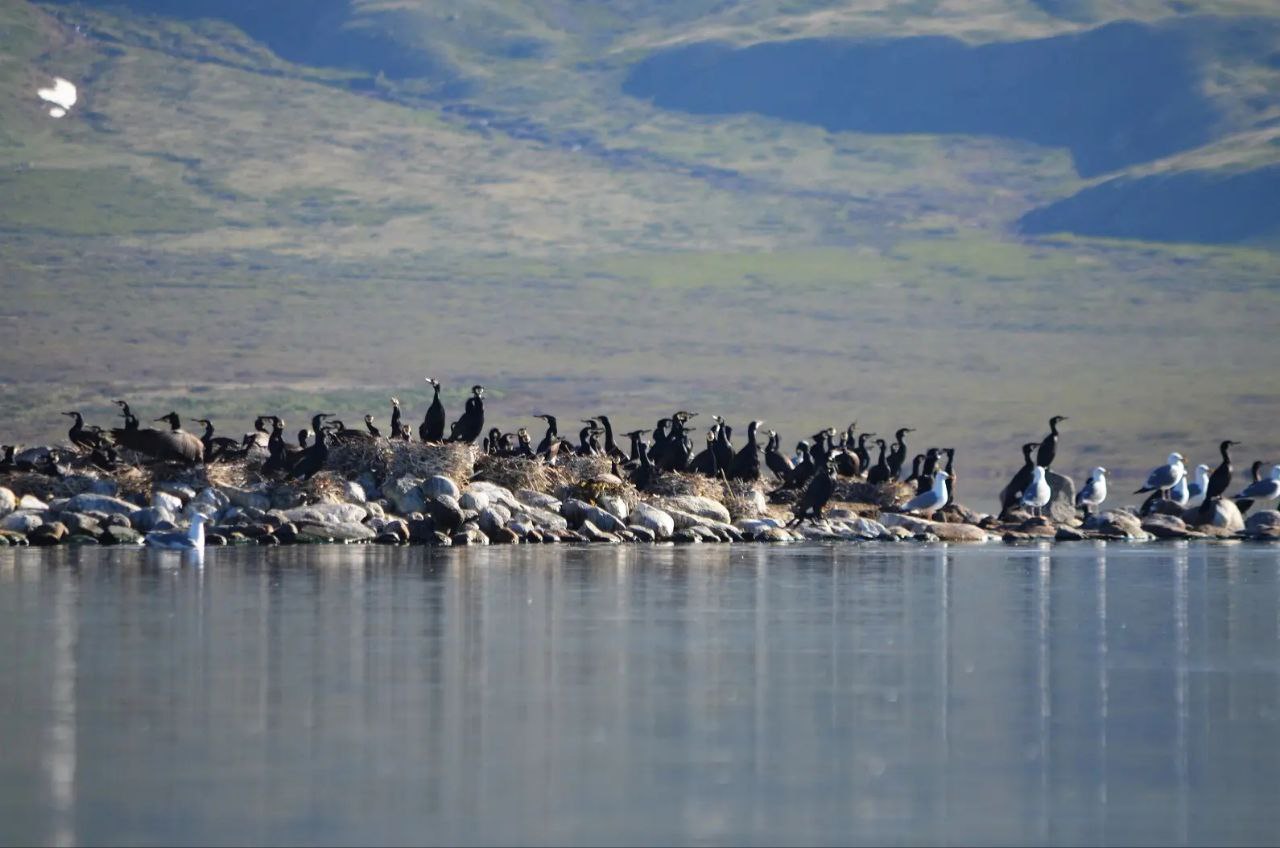 На двух крошечных островах посреди озера камней не видно - они покрыты гнёздами чаек и бакланов. Это единственная в России высокогорная колония большого баклана. Всего в котловине гнездится 93 вида птиц.