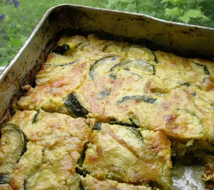 После этого заливаем яично-молочную смесь поверх кабачков в форме и ставим в заранее разогретую до 200 градусов духовку. Запекать нужно около 30 минут, пока поверхность не подрумянится и не приобретет аппетитный золотистый цвет.