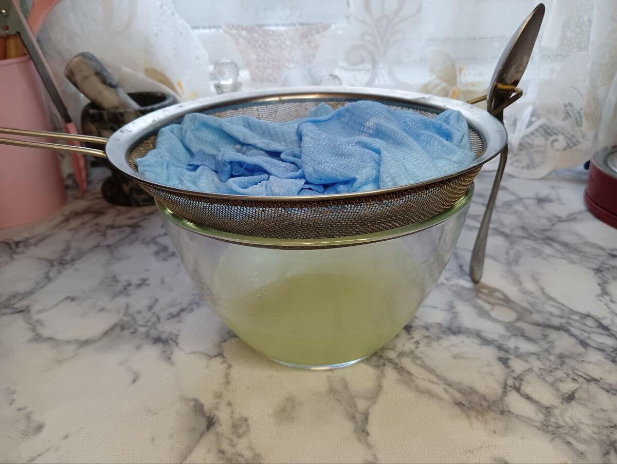 Первым делом, кефир замораживается, а затем отцеживается через дуршлаг с полотенцем на протяжении ночи. В результате получится густая творожная масса, схожая с сыром Филадельфия, а также сыворотка, которая нам тоже пригодится.
