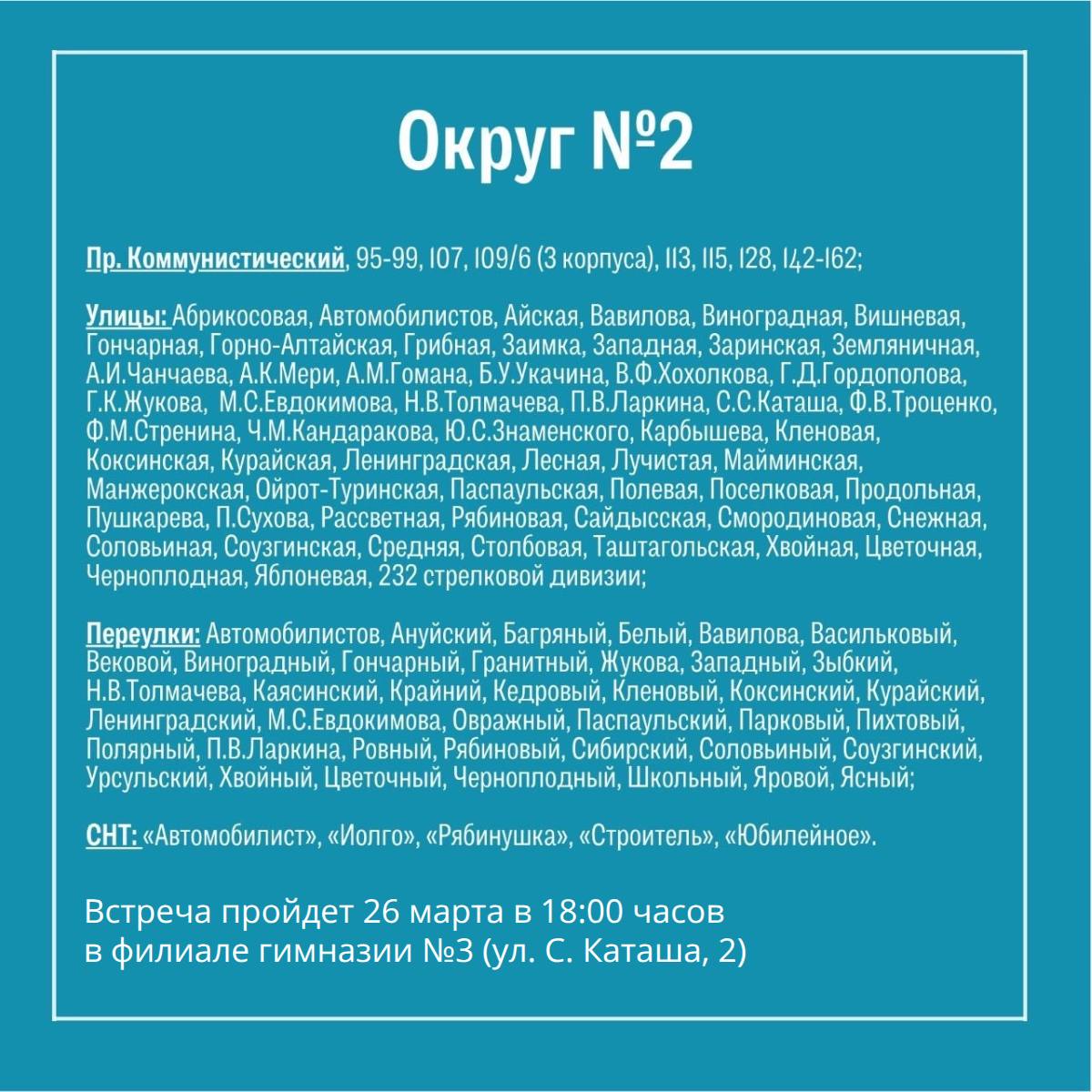 В марте и апреле в Горно-Алтайске пройдут встречи с жителями по округам.