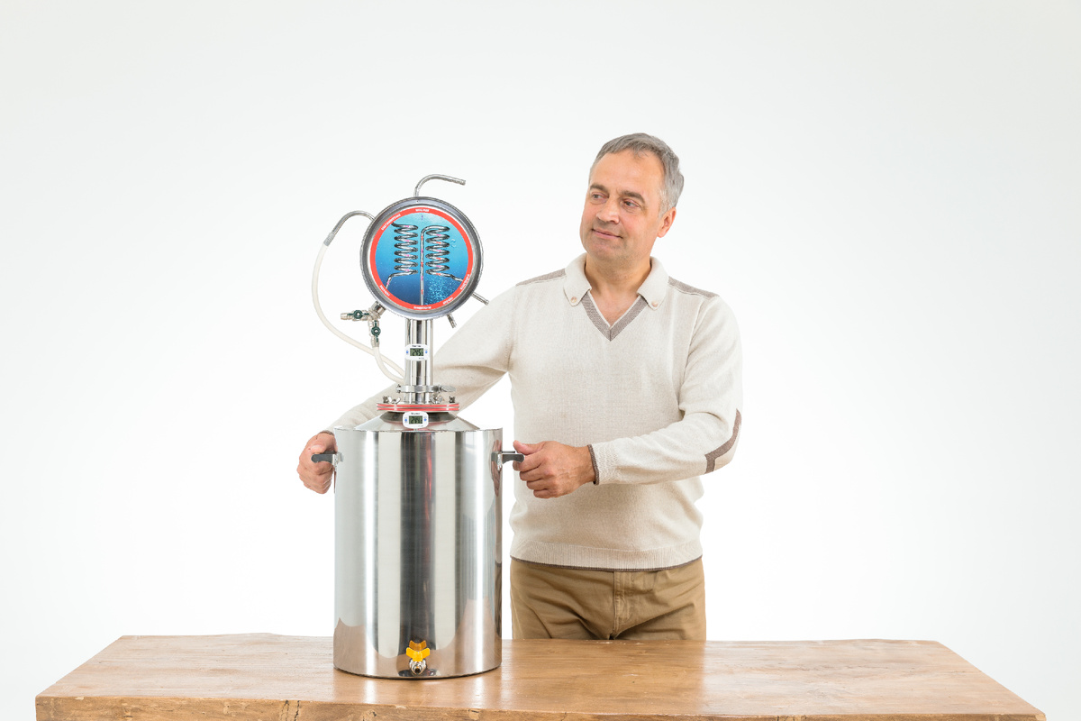 Изготовленный из нержавеющей стали AISI 430, этот дистиллятор деактивирует любые реакции со спиртом, обеспечивая максимально чистый вкус и долговечность. Удобная широкая горловина позволяет без труда заливать брагу и очищать аппарат, а съемный внутренний бак упрощает уход за устройством. Дополнительным удобством служат два термометра для точного контроля температуры в обоих баках.
