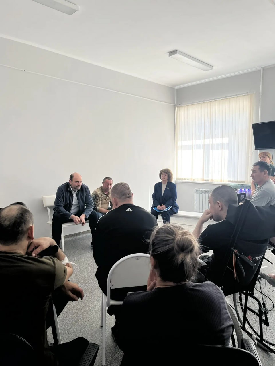 Депутаты встретились с бойцами спецоперации, проходящими лечение в реабилитационном отделении ЧРБ. Одного из бойцов сопровождает супруга. В соответствии с принятым законом на неё распространяется право находиться на реабилитации и пройти бесплатный курс лечения.
