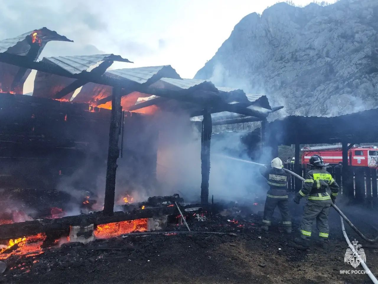 На тушении работали 11 человек, две единицы техники. Площадь пожара составила 83 квадратных метра. Никто не пострадал, сообщает ГУ МЧС по Республике Алтай