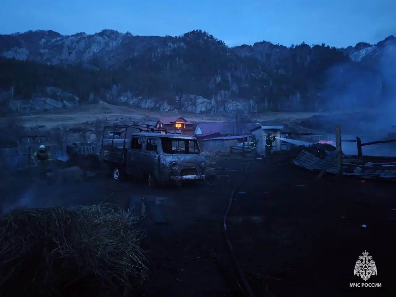 Крупный пожар в селе Еланда Чемальского района: на улице Катунской горел жилой дом, баня, автомобиль УАЗ.