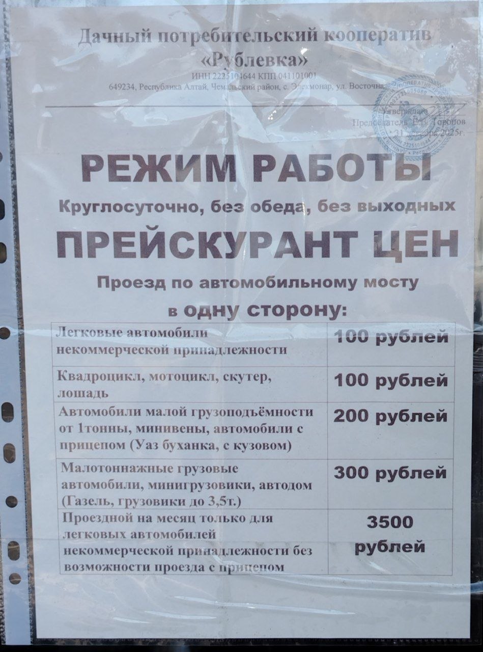 Компетентные органы, внесите ясность. Имеет ли право организация принимать оплату только наличными? Дпк "Рублёвка", прайс которой висит у моста через Катунь в районе Аюлы, не предоставляет такой возможности. И это бесит, честно говоря. По всем каналам трубят о легализации, кассах и фискальной отчётности. А тут: давайте наличные.Телефон ответственных лиц кассир не даёт, уголка потребителя нет. Это вообще законно?