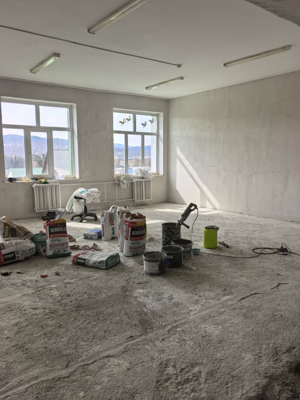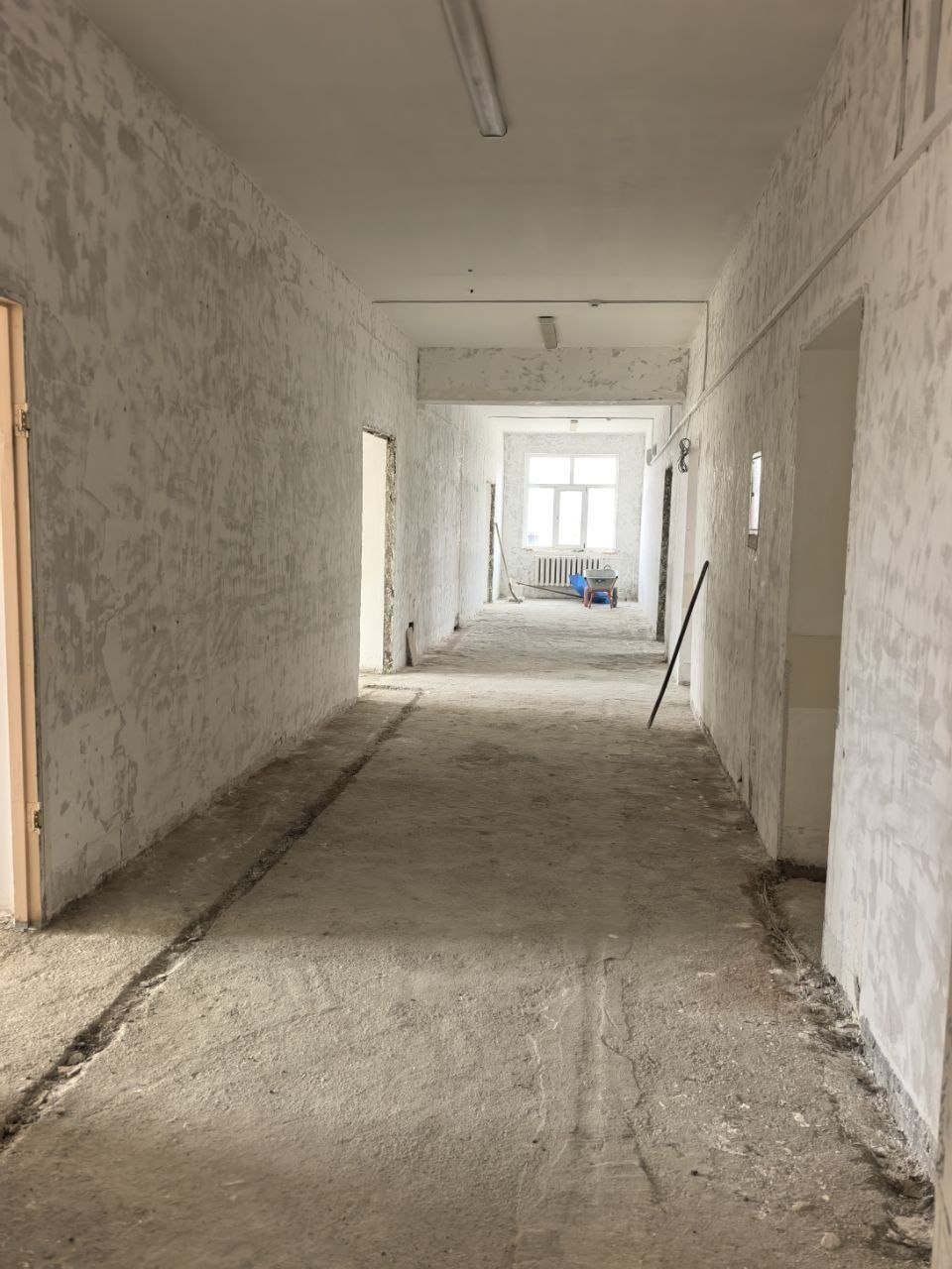 Демонтажные работы первого блока завершены, начаты отделочные: выравнивание, грунтовка, шпаклёвка стен. В планах — утепление всех окон, частичная замена стеклопакетов, утепление фасада, установка звукоизолирующих потолков «Армстронг», устройство плитки, монтаж противопожарной лестницы, систем сигнализации, вентиляции, видеонаблюдения, отопления и водоснабжения, обновление спортивного зала и пищеблока.
