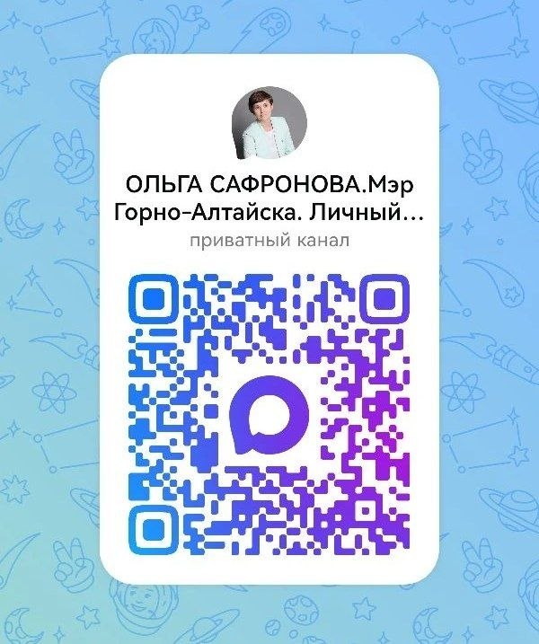 Мэр города Горно-Алтайска Ольга Сафронова: https://max.ru/join/G_TVollJWpz8c1a20PF8A5rVzEg3BRKhkLpYF8AvW68