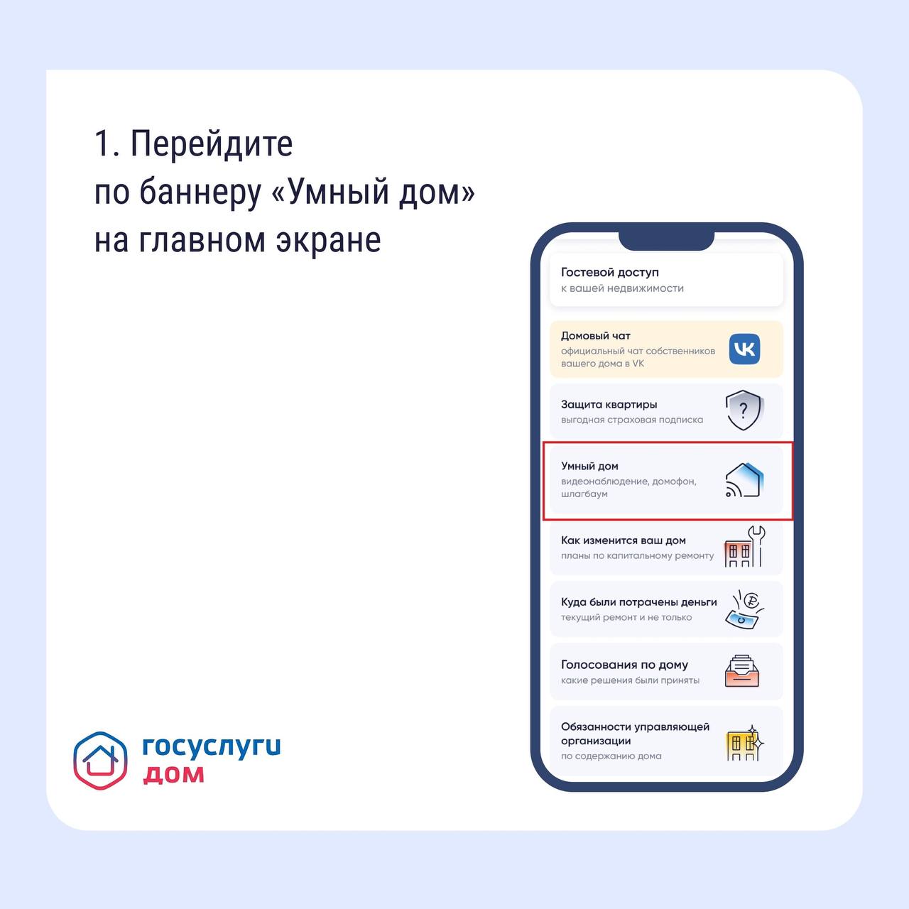 В «Госуслуги Дом» в пилотном режиме работают сервисы «умного дома» — видеонаблюдение, шлагбаум / ворота, домофон. Жители могут подать заявку на подключение из мобильного приложения.