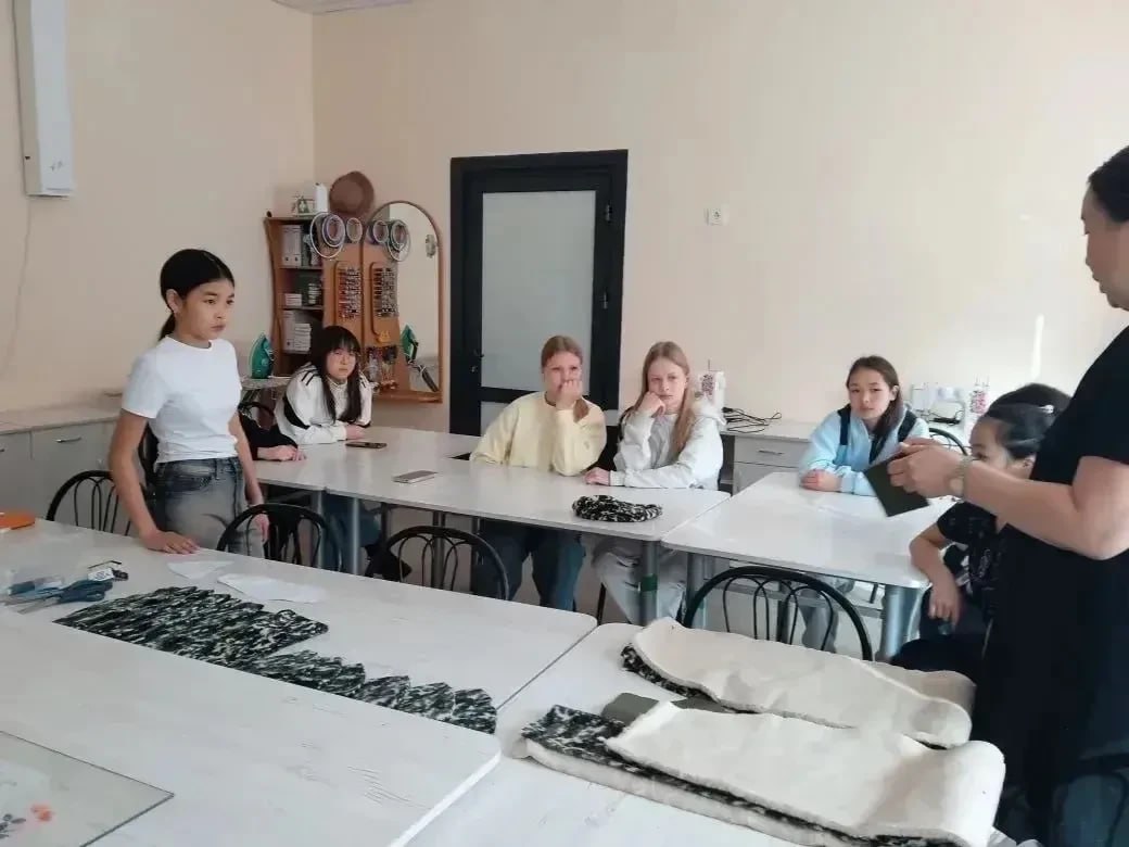 В преддверии выставки преподаватель труда (технологии) 7-й школы Ефтифеева Экемель провела занятие для учеников 1-го лицея по изготовлению тёплых поясов и шапок для бойцов СВО.