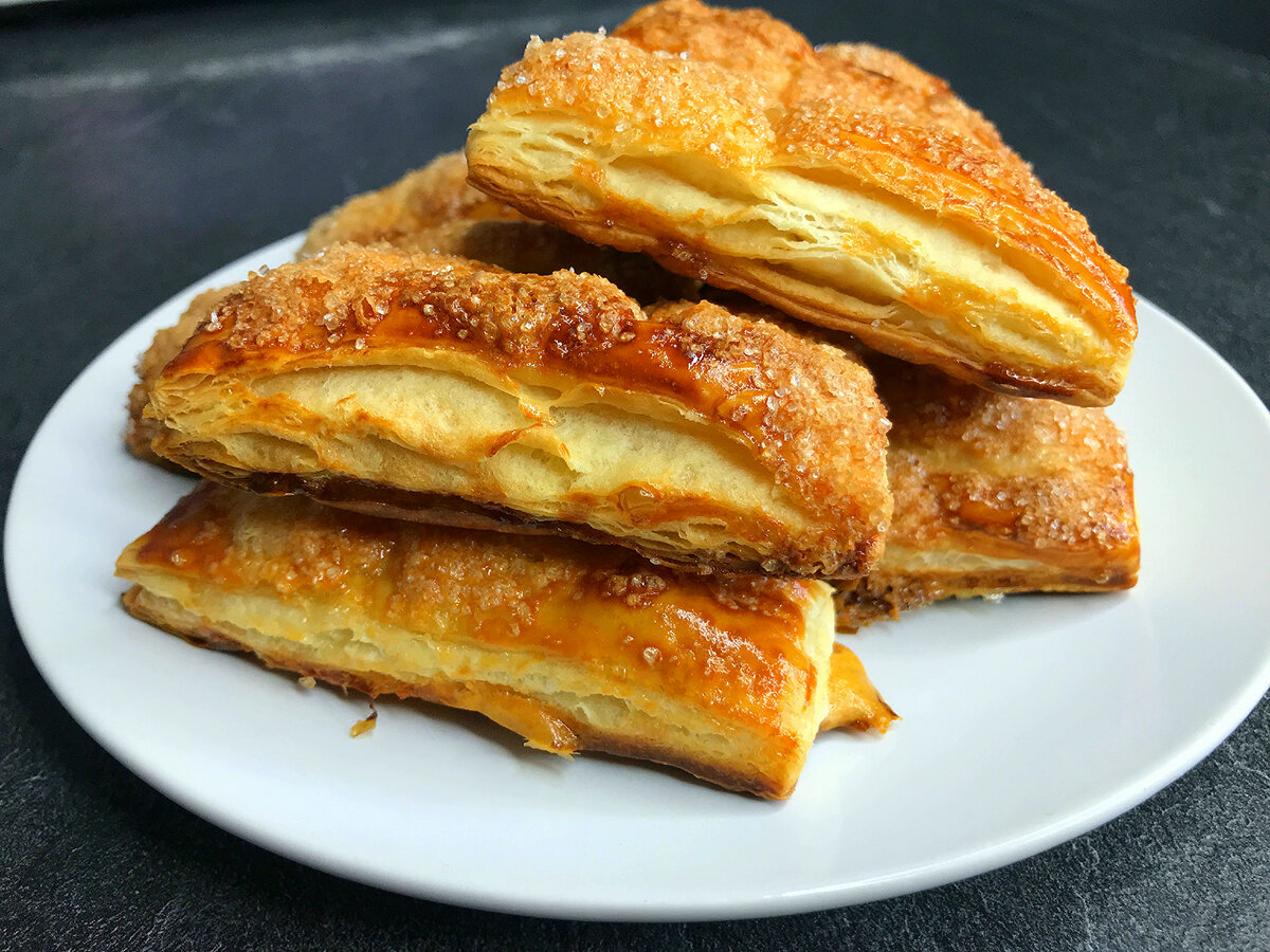Для приготовления потребуется лишь замороженное слоеное тесто. А вот его форма может быть любой: можно нарезать на кубики, но идеальные «язычки» всегда выглядят аппетитно и вызывают ностальгию по счастливым моментам.