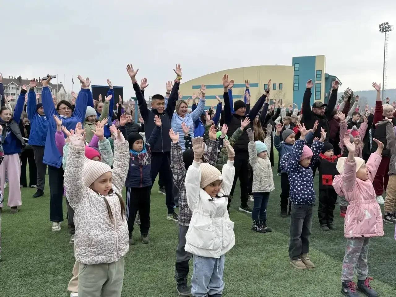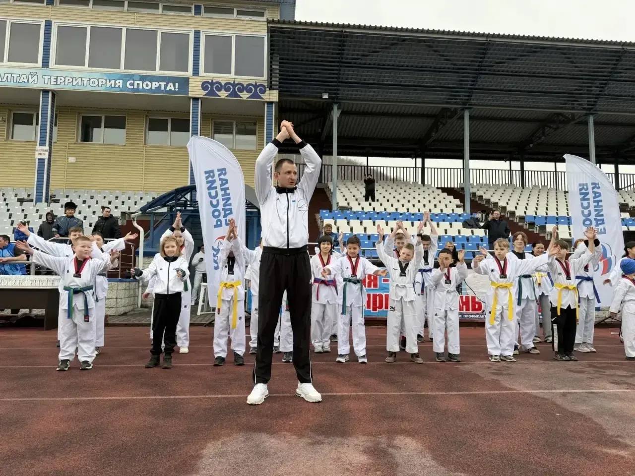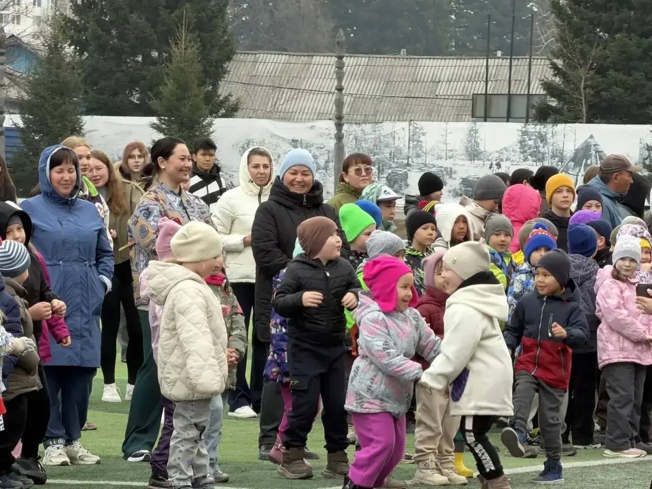 На стадионе «Спартак» собрались дети, взрослые, семьи, трудовые коллективы. Участники поучаствовали в зарядке, а затем пробежали два километра вместе с министром молполитики и спорта РА Александром Суразовым и Героем России Амыром Аргамаковым.