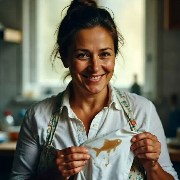 - Пот: сначала 5%-ный раствор гипосульфита или промывка бурой/нашатырём; для стойких жёлтых следов — осторожно 5%-ный раствор щавелевой кислоты (предварительно тест на незаметном участке).