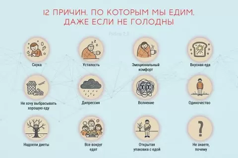 Также стоит отметить, что существуют распространенные причины, по которым люди едят без голода, и важно их осознавать. Исследуя эти моменты, можно понять, когда действительно необходимо есть. С этим осознанием приходит свобода - это не значит, что нужно есть только брокколи и гречку. Осознанность означает свободу выбирать, в том числе и картошку фри, когда вы этого действительно хотите, а не из-за эмоционального состояния.