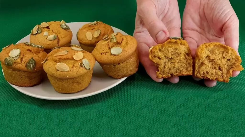 Полученное тесто разложить по формочкам для кексов, ориентируясь на количество ингредиентов — из предложенного набора получится 8-9 кексов. Можно также испечь кекс в форме кольца. По желанию кексы можно украсить тыквенными семечками или кунжутом.