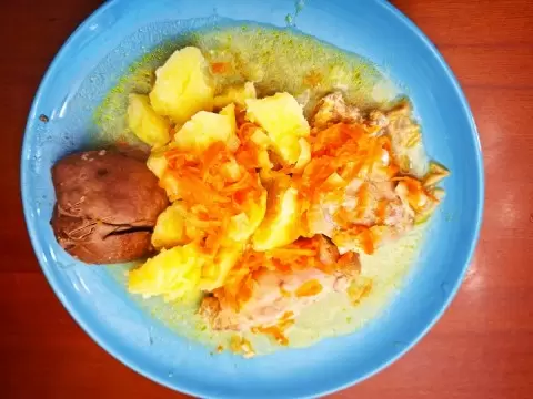 Отличное сочетание со сметанным соусом придает блюду неповторимый вкус, а картошка в качестве гарнира завершает этот кулинарный шедевр. Гарнир можно подавать как отварным, так и в виде пюре, полив сметанным соусом.