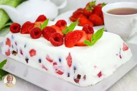 Перед подачей десерт украсьте свежими ягодами и листьями мяты. Этот изысканный йогуртовый десерт станет настоящим хитом вашего летнего стола. Приятного аппетита!