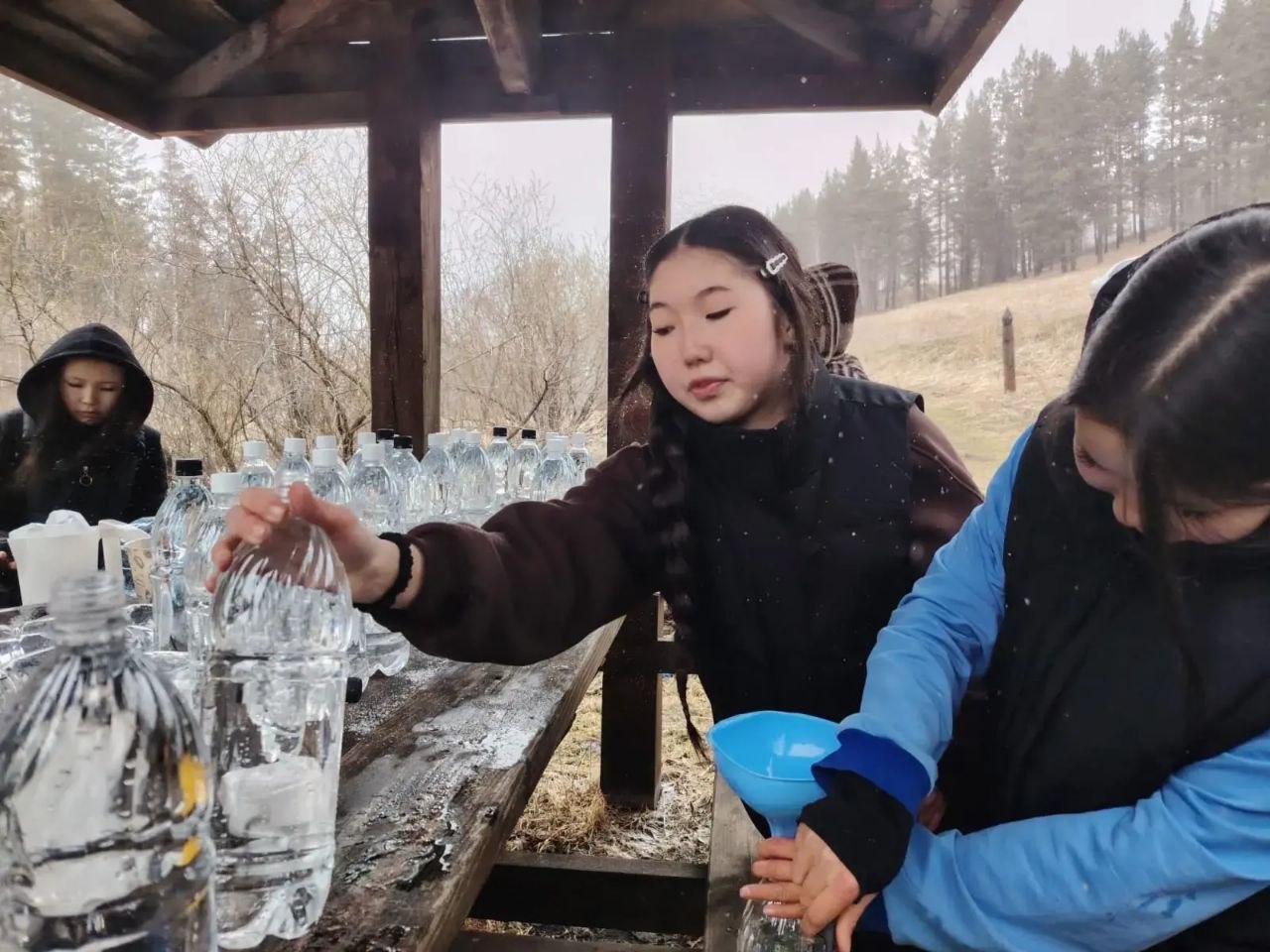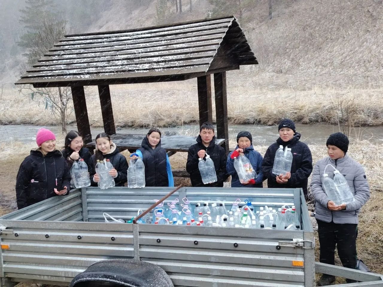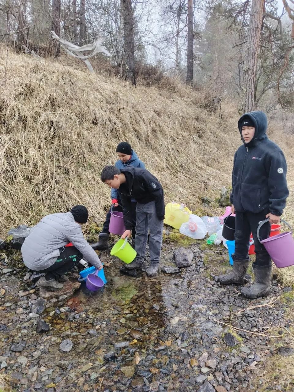 Восьмиклассники Бешпельтира с работниками СДК и администрации поселения набрали и разлили в тару родниковую воду для бойцов СВО.
