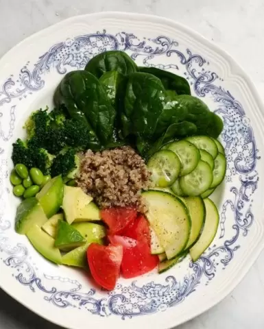 - Боул из киноа и свежих овощей с яблочным соусом