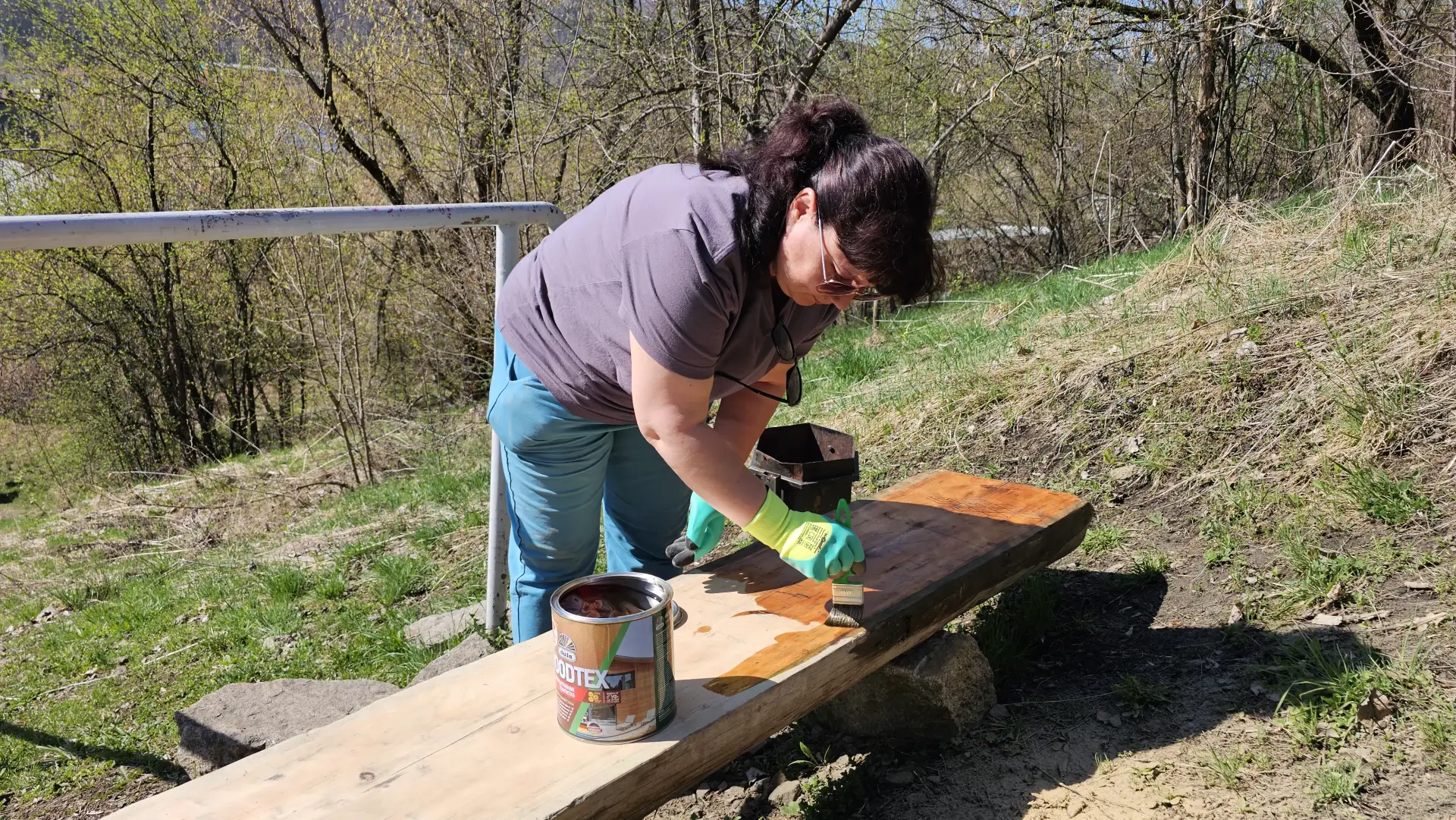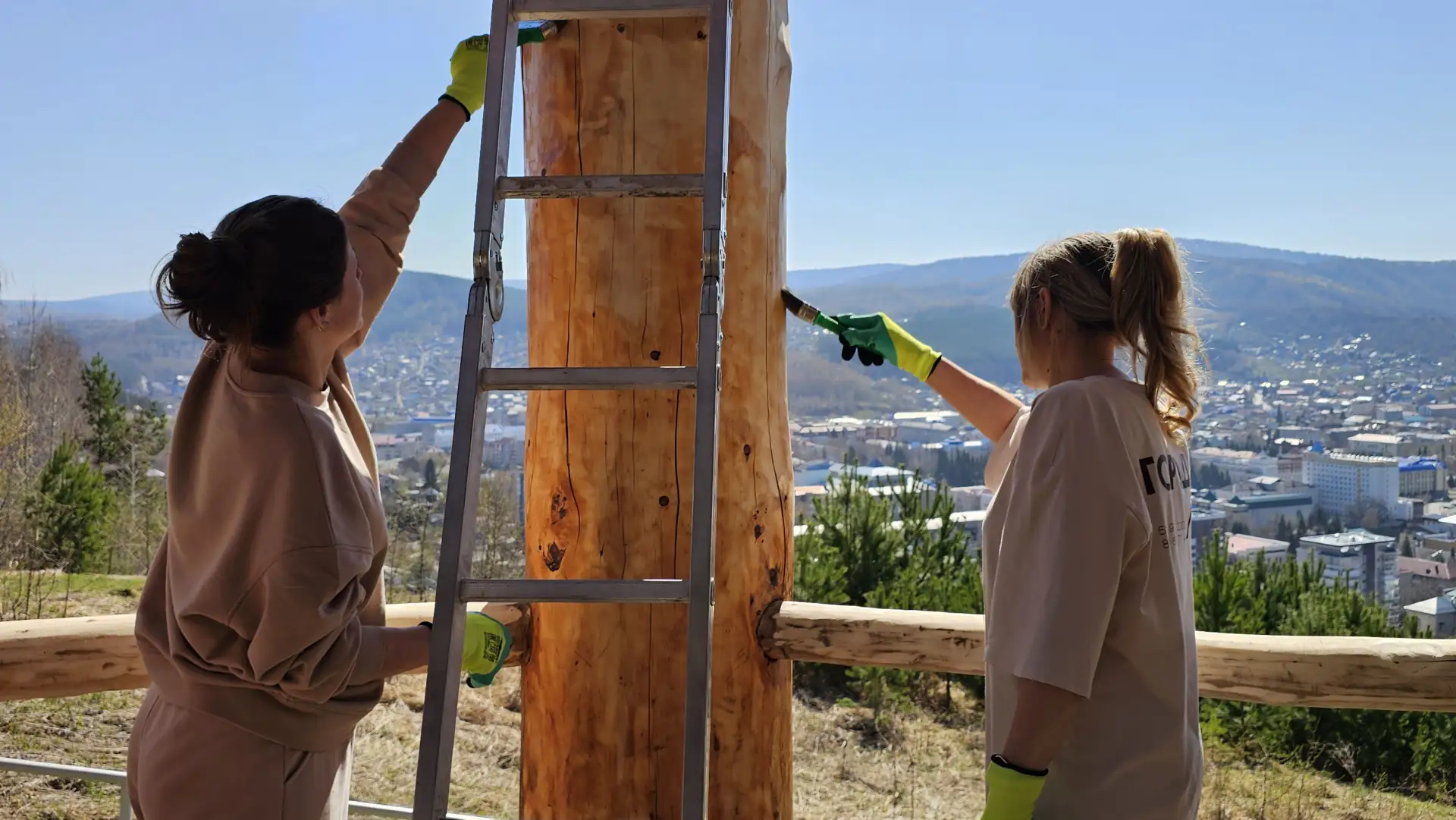 Участники собрали мусор, очистили скамейки и отреставрировали «Беседку зайсанов», убрав с неё вандальные надписи.