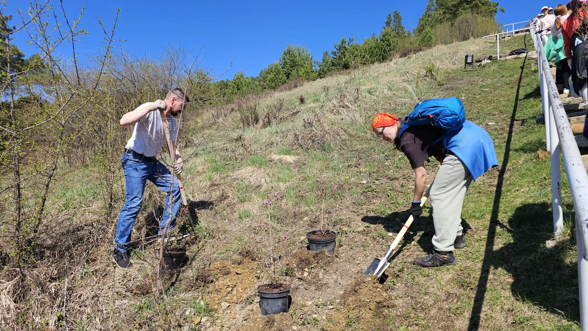 Вдоль подъёма на гору высадили 100 саженцев маральника. Растения вырастили в местном питомнике.