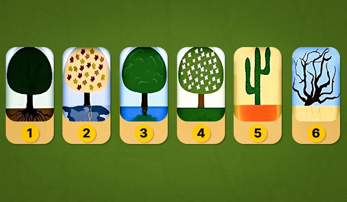 Посмотрите внимательно на предложенные деревья и выберите то, которое вызывает у вас наибольшее притяжение. Каждый выбор несет в себе определенный символизм и может рассказать о вашем внутреннем состоянии и взглядах на жизнь: