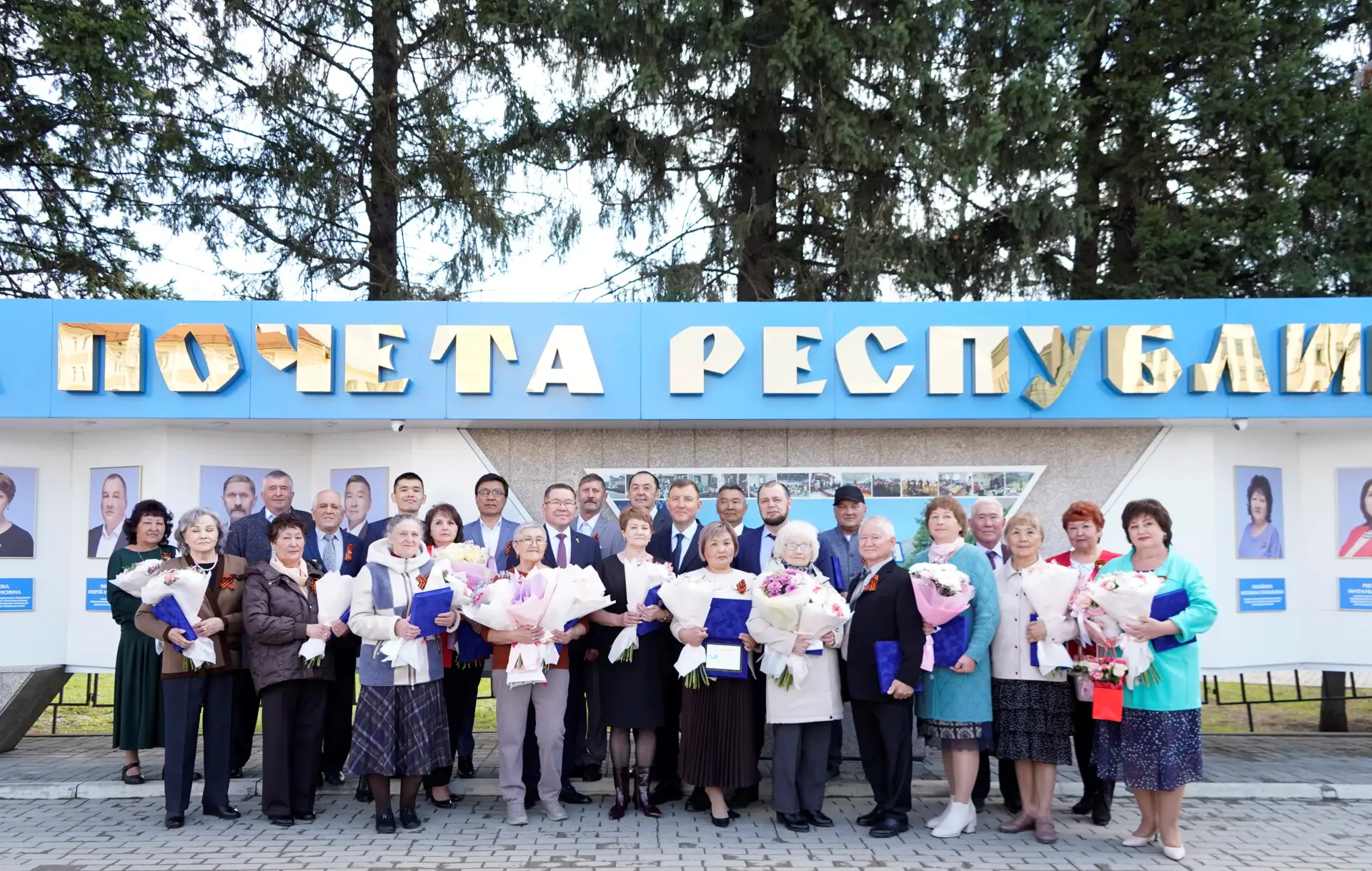 Лауреатов приветствовали Глава Республики Алтай Андрей Турчак, Председатель Государственного Собрания – Эл Курултай Эжер Ялбаков, участник СВО, кавалер двух орденов мужества, участник программы «Время героев», министр спорта и молодежной политики РА Александр Суразов и председатель объединения Организации профсоюзов РА Андрей Ищенко.